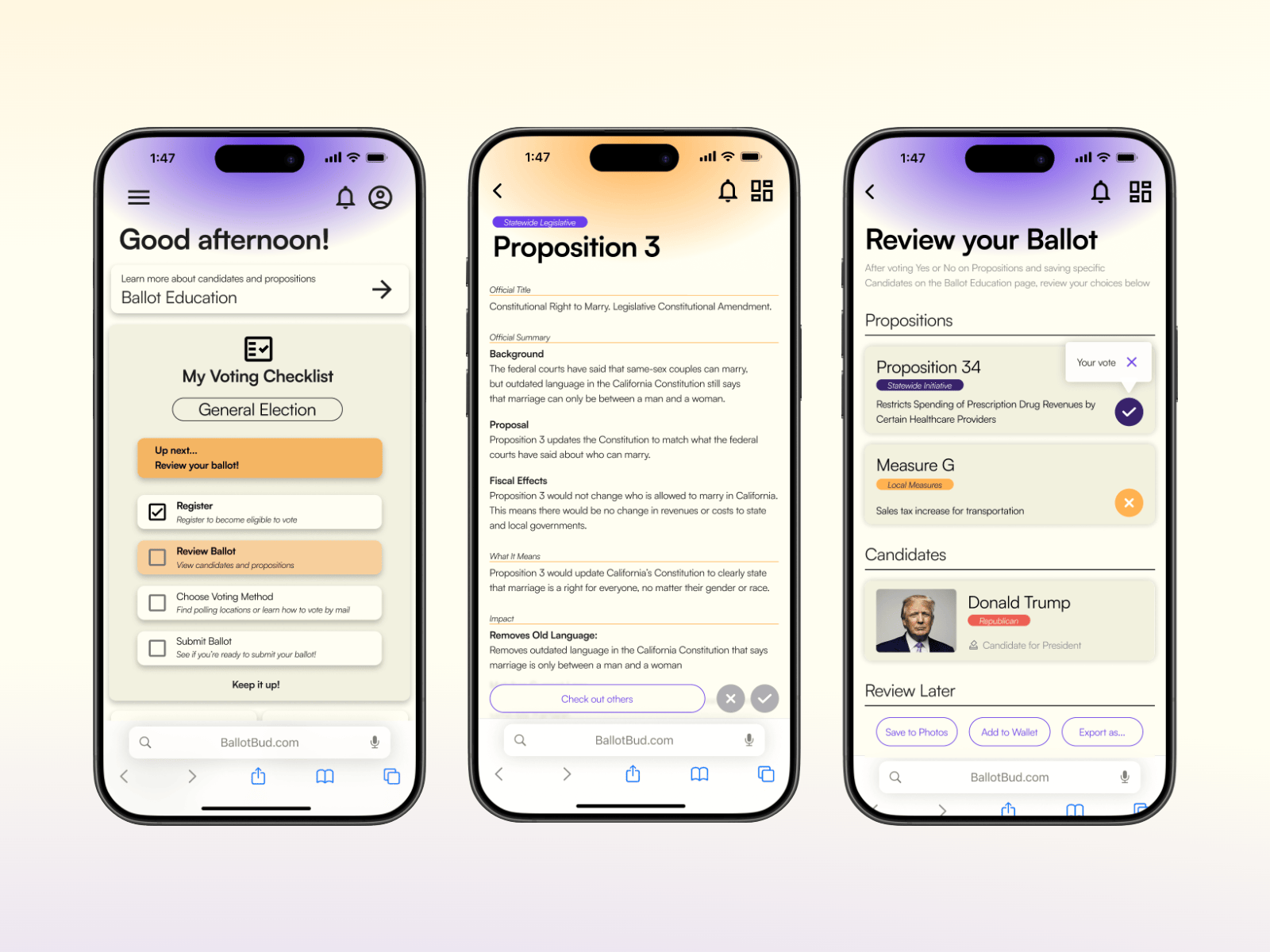 BallotBud centralizes election deadlines, personalized ballot breakdowns, and unbiased explanations into one streamlined platform.